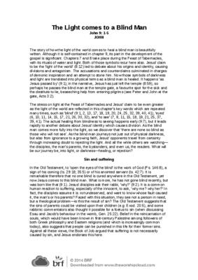 The story of how the light of the world comes to heal a blind man is beautifully written. Although it is self-contained in chapter 9, its part in the development of the gospel is significant…