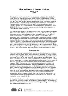 This day is not only ‘a festival of “the Jews”’, but also a Sabbath (5:1, 9b). So “the Jews” notice the man carrying his bed on the Sabbath and accuse him of doing something unlawful (5:10)…