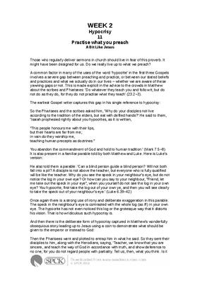 A common factor in many of the uses of the word ‘hypocrite’ in the first three Gospels involves a severe gap between preaching and practice, or between our stated beliefs and practices and what we actually do in our lives – whether we are aware of these yawning gaps or not. This is made explicit in the advice to the crowds in Matthew about the scribes and Pharisees: ‘Do whatever they teach you and follow it; but do not do as they do, for they do not practise what they teach’ (23.2–3)...
