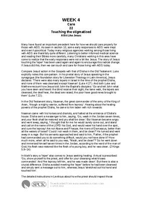 Many have found an important precedent here for how we should care properly for those with AIDS. As seen in section 10, some early responses to AIDS were inept and even hypocritical. Today many religious agencies working among those living with AIDS are thankfully quite different. Listening to better informed medical science and reading their Bibles more carefully, many Christians working in this area have come to realize that the early responses were not a bit like Jesus. The story of Jesus touching the ‘leper’ has been used again and again to encourage this radical change. If Jesus did this, then we can touch and care for those living with AIDS today...