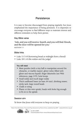 It is easy to become discouraged from praying regularly, but Jesus emphasised the importance of being persistent. It is important to encourage everyone to find different ways to maintain interest and different reminders to help them persist.