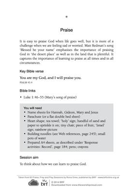 From 50 Praise, Pray and Play Sessions - Easy-to-run all-age outlines for use throughout the week by Rona Orme.