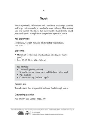 Touch is powerful. When used well, touch can encourage, comfort and help. Unfortunately, it can also be used to harm. This session tells of a woman who knew that she would be healed if she could just touch Jesus. It emphasises the positive aspects of touch.