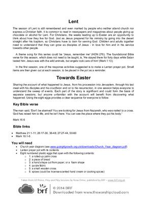 Sharing the account of what happened to Jesus, from his pro- cession into Jerusalem, through his last meal with his disciples and his crucifixion and on to his resurrection, in one session helps everyone to understand the sweep of events. Each part of the story is significant and could form the basis of separate sessions, but anyone unfamiliar with the account will benefit from discovering what happened. Using the eight eggs provides a clear sequence for everyone to follow.