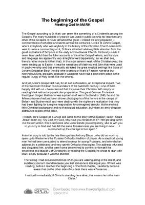The Gospel according to St Mark can seem like something of a Cinderella among the Gospels. For many hundreds of years it was used in public worship far less than any other of the Gospels. It never attracted the great – indeed the encyclopaedic – commentaries of scholars and saints across the centuries. Unlike St John’s Gospel, where everybody who was anybody in the history of the Christian Church seemed to want to write a commentary on it, St Mark attracted relatively little attention from the great expositors of Scripture in the early and mediaeval Church. Its brevity made it seem less useful than the fuller accounts of the other Gospel writers, and its style and language are apparently very straightforward (apparently; as we shall see, there’s rather more to it than that). In the most solemn week of the Christian year, the week leading up to Easter, it was the narratives of Matthew and John that were used in public worship and that eventually attracted the great musical settings like those of Johann Sebastian Bach (he did write a setting of Mark’s Passion narrative but nothing survives, probably because it would not have had a prominent place in the regular liturgy of Holy Week like the others)…