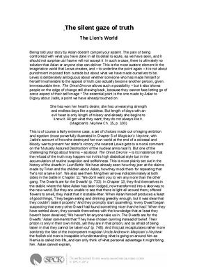 Being told your story by Aslan doesn’t compel your assent. The pain of being confronted with what you have done in all its detail is acute, as we have seen, and it should not surprise us if some will not accept it. In such a case, there is ultimately no solution that Aslan or anyone else can deliver. This is the most austere element in the imaginative world that Lewis creates, and – to underline the point again – it is not about punishment imposed from outside but about what we have made ourselves to be. Lewis is deliberately ambiguous about whether someone who has made himself or herself invulnerable to the appeal of truth can actually become another person, given immeasurable time. The Great Divorce allows such a possibility – but it also shows people on the edge of change still drawing back, because they cannot face letting go of some aspect of their self-image. 1 The essential point is the one made by Aslan to Digory about Jadis, a point we have already touched on...