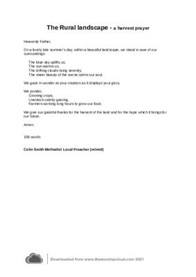 gazing upon the rural landscape in late summer. Wonder, awe and glory are acknowledged culminating in thankfulness for the harvest