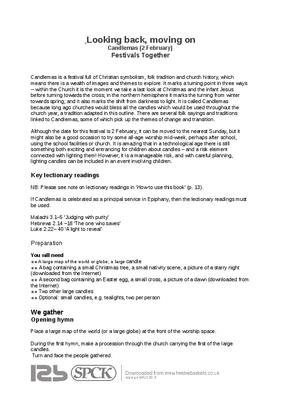 Candlemas is a festival full of Christian symbolism, folk tradition and church history, which means there is a wealth of images and themes to explore. It marks a turning point in three ways – within the Church it is the moment we take a last look at Christmas and the infant Jesus before turning towards the cross; in the northern hemisphere it marks the turning from winter towards spring; and it also marks the shift from darkness to light. It is called Candlemas because long ago churches would bless all the candles which would be used throughout the church year, a tradition adapted in this outline. There are several folk sayings and traditions linked to Candlemas, some of which pick up the themes of change and transition...