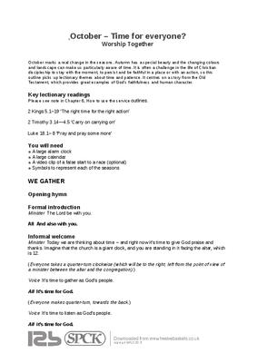 October marks a real change in the seasons. Autumn has a special beauty and the changing colours and landscape can make us particularly aware of time. It is often a challenge in the life of Christian discipleship to stay with the moment, to persist and be faithful in a place or with an action, so this outline picks up lectionary themes about time and patience. It centres on a story from the Old Testament, which provides great examples of God’s faithfulness and human character...