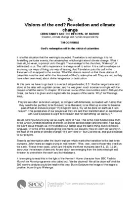 It is in this situation that the warning is sounded. Revelation is not astrology: it is not foretelling particular events, the catastrophes which might attend climate change. What it does do, however, is prompt us to thought…