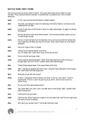 Two young people are living rough in London. The action takes place late at night in a shop doorway. Props required include a blanket, a handkerchief, a cardboard box, and a mobile telephone.