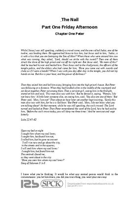 But what you probably don’t understand is this: it is what he wanted. This is what he was seeking out. And I really believed that he might be – no, that he was – the Messiah. But not like this. (I mean he had every opportunity to show people but he said nothing, did nothing.) And then last night by the fire he just looked at me. And I don’t know how to read that look. So much else has happened. So much in so short a time: washing our feet and telling us to love each other; breaking bread and telling us it was his body, pouring wine and saying it was his blood; saying that one of us would deny him, and then, when Judas left – surely he must have known why? – again, nothing; he just let him go...