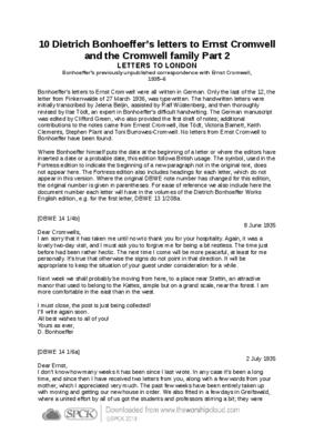 10 Dietrich Bonhoeffer’s letters to Ernst Cromwell and the Cromwell family Part 2