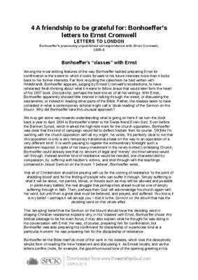 Among the most striking features of the way Bonhoeffer tackled preparing Ernst for confirmation is the extent to which it looks forward to his future interests more than it looks back to his former interests…