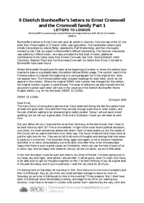 9 Dietrich Bonhoeffer’s letters to Ernst Cromwell and the Cromwell family Part 1