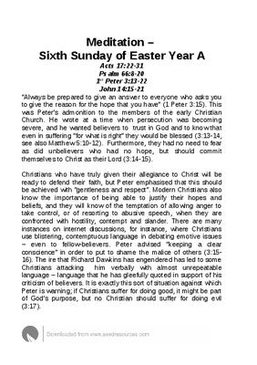 “Always be prepared to give an answer to everyone who asks you to give the reason for the hope that you have” (1 Peter 3:15). This was Peter’s admonition to the members of the early Christian Church. He wrote at a time when persecution was becoming severe, and he wanted believers to trust in God and to know that even in suffering “for what is right” they would be blessed (3:13-14, see also Matthew 5:10-12). Furthermore, they had no need to fear as did unbelievers who had no hope, but should commit themselves to Christ as their Lord (3:14-15)...
