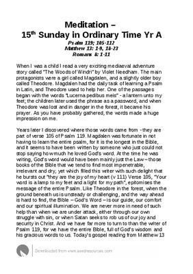 Meditation – 15th Sunday in Ordinary Time Yr A