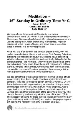 Meditation – 16th Sunday in Ordinary Time Yr C