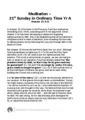 Meditation – 21st Sunday in Ordinary Time Yr A
