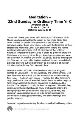 Meditation – 22nd Sunday in Ordinary Time Yr C
