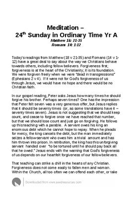 Meditation – 24th Sunday in Ordinary Time Yr A