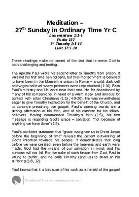 Meditation – 27th Sunday in Ordinary Time Yr C