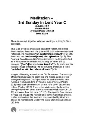 That God loves his children is abundantly clear. He invites them freely to feast with him (Isaiah 55:1-2), to be restored and refreshed. He has made “an everlasting covenant” (v 3) with them and has “endowed [them] with splendour” (v 5). The Psalmist David knows God’s love intimately. He longs for God as a thirsty man in a desert would long for water (63:1), because “[God’s] love is better than life” (v 3), and – just like Isaiah’s image of feasting – to be in God’s presence is to be “satisfied as with the richest of foods” (v 5)...