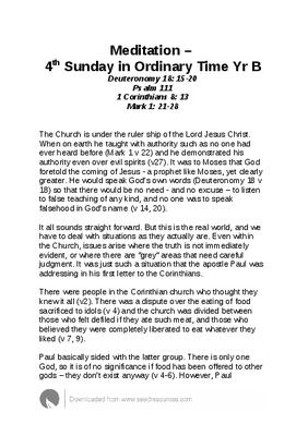 Meditation – 4th Sunday in Ordinary Time Yr B