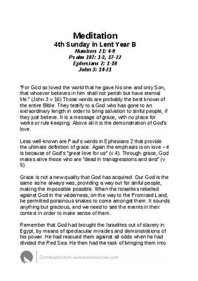 “For God so loved the world that he gave his one and only Son, that whoever believes in him shall not perish but have eternal life.” (John 3 v 16) Those words are probably the best known of the entire Bible. They testify to a God who has gone to an extraordinary length in order to bring salvation to sinful people, if they just believe. It is a message of grace, with no place for works or rule-keeping. Above all it is the demonstration of God’s love...