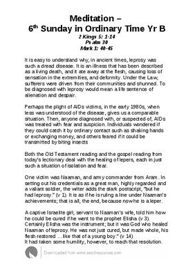 Meditation – 6th Sunday in Ordinary Time Yr B