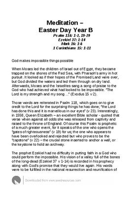 And so we come to Easter Day. The Easter Story is all about events that are apparently impossible. It had seemed impossible to the disciples that Jesus should die; how could a good man be put to death as a criminal? But he was. And surely he was more than a man; how could God die? And yet he did.
