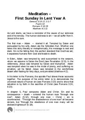 Meditation – First Sunday in Lent Year A