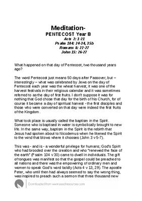 The word Pentecost just means 50 days after Passover, but – interestingly – what was celebrated by Jews on the day of Pentecost each year was the wheat harvest; it was one of the harvest festivals in their religious calendar and it was sometimes referred to as the day of first fruits. I don’t suppose it was for nothing that God chose that day for the birth of his Church, for of course it became a day of spiritual harvest - the first disciples and those who were converted on that day were indeed the first fruits of the Kingdom...