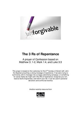 A prayer of Confession based on Matthew 3:1-2, Mark 1:4, and Luke 3:3