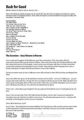 Each of the following sketches (scenes) can be used to form the basis for a complete act of worship or used as individual scenes on separate occasions. Each scene will require a narrator to read the linking text as well as the characters in the scene itself.