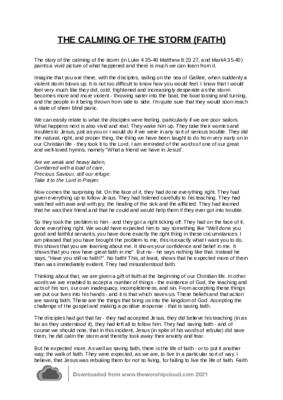This short reflection/sermon (1125 words) examines the nature of faith through a consideration of the story in the light of the disciples behaviour and Jesus response.