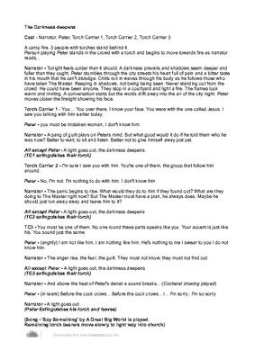 Cast - Narrator, Peter, Torch Carrier 1, Torch Carrier 2, Torch Carrier 3