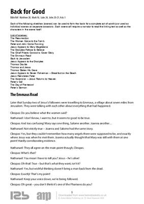 Each of the following sketches (scenes) can be used to form the basis for a complete act of worship or used as individual scenes on separate occasions. Each scene will require a narrator to read the linking text as well as the characters in the scene itself.