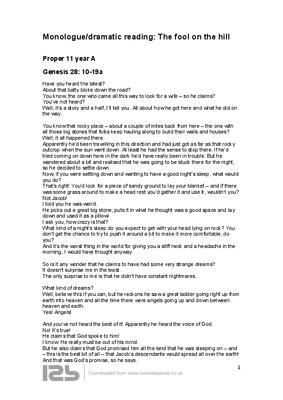17 July 2011, Fifth Sunday after Pentecost, Genesis 28: 10-19a, monologue,