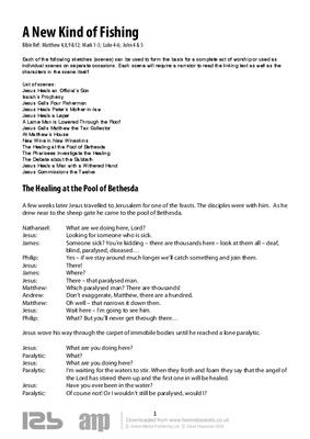 Each of the following sketches (scenes) can be used to form the basis for a complete act of worship or used as individual scenes on separate occasions. Each scene will require a narrator to read the linking text as well as the characters in the scene itself.