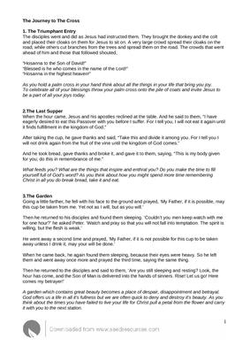 Short 'stations' with Bible readings, reflections and actions based around the stages of Jesus' journey to The Cross