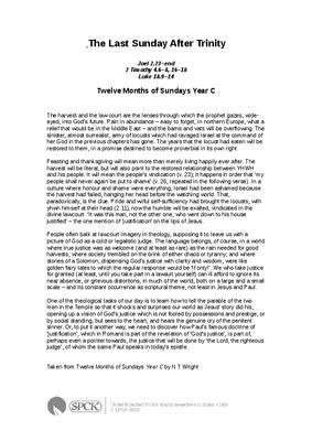The harvest and the law court are the lenses through which the prophet gazes, wide-eyed, into God’s future. Rain in abundance – easy to forget, in northern Europe, what a relief that would be in the Middle East – and the barns and vats will be overflowing. The sinister, almost surrealist, army of locusts which had ravaged Israel at the command of her God in the previous chapters has gone. The years that the locust had eaten will be restored to them, in a promise destined to become proverbial in its own right...
