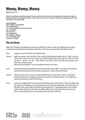 Each of the following sketches (scenes) can be used to form the basis for a complete act of worship or used as individual scenes on separate occasions. Each scene will require a narrator to read the linking text as well as the characters in the scene itself.