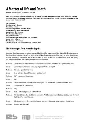 Each of the following sketches (scenes) can be used to form the basis for a complete act of worship or used as individual scenes on separate occasions. Each scene will require a narrator to read the linking text as well as the characters in the scene itself.