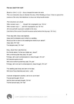This is an interactive story to illustrate the story of the Wedding at Cana. It tries to capture the essence of the story that obedience to Jesus can bring transformation.