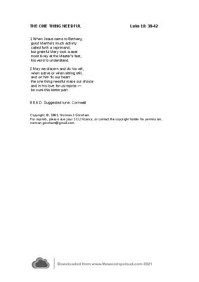 THE ONE THING NEEDFUL Luke 10: 38-42