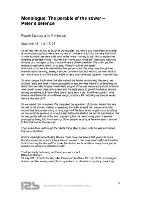 10 July 2011, Fourth Sunday after Pentecost, Matthew 13: 1-9, 18-23, momologue,