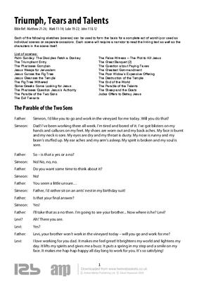 Each of the following sketches (scenes) can be used to form the basis for a complete act of worship or used as individual scenes on separate occasions. Each scene will require a narrator to read the linking text as well as the characters in the scene itself.