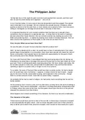 It is important therefore for us to remind ourselves that God does act in peoples lives- sometimes, (but not always) in a spectacular way – to bring them to the point of making a decision about their future direction. We can remind ourselves by reading accounts in the Bible and pondering them – or indeed by reading more modern Christian literature. Here we take a look at the experience of Paul’s jailer, to see what we can learn from it.