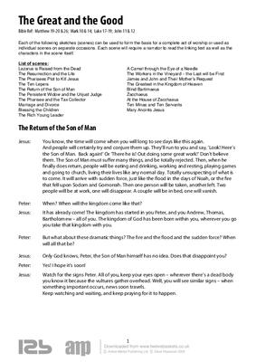 Each of the following sketches (scenes) can be used to form the basis for a complete act of worship or used as individual scenes on separate occasions. Each scene will require a narrator to read the linking text as well as the characters in the scene itself.